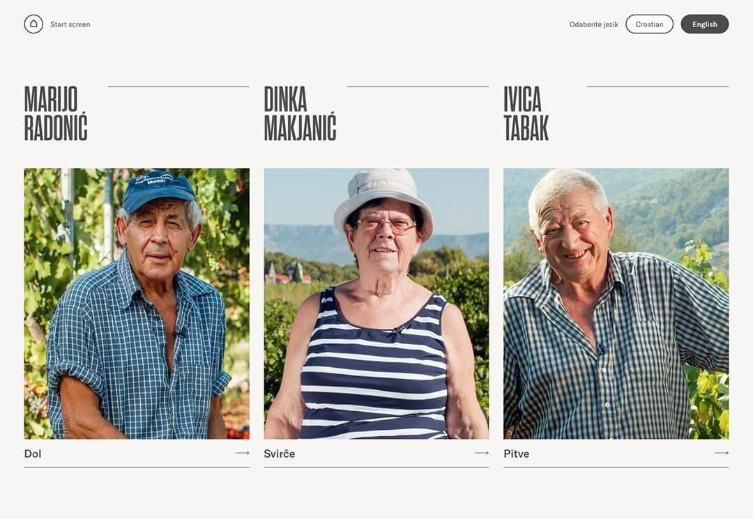 The Pitve Wine Museum on the Croatian island of Hvar highlights the region's centuries-old winemaking traditions as one of the island's most cherished cultural landmarks. To bring this history to life for modern audiences, Simple Code was selected to develop an immersive, interactive exhibit featuring 9 custom web applications. These apps showcase diverse media to draw visitors into the story of Hvar's winemaking legacy through dynamic new educational experiences.